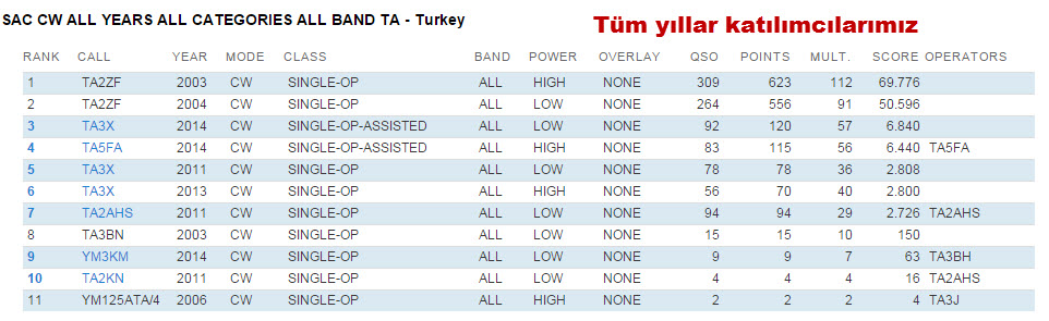 10. Log Kayıtlar CW ve SSB için ayrı ayrı sunulmalıdır ve QSO kronolojik sırayla listelenmiş olmalıdır. Bir Log göndererek, log ve denetleme raporu nun herkese açık yayınlana bilirliğini kabul etmiş sayasınız.