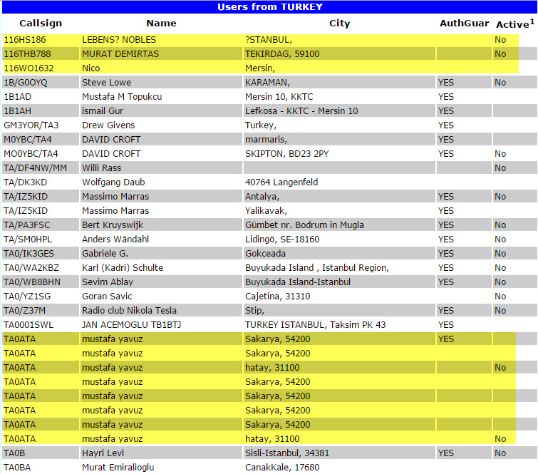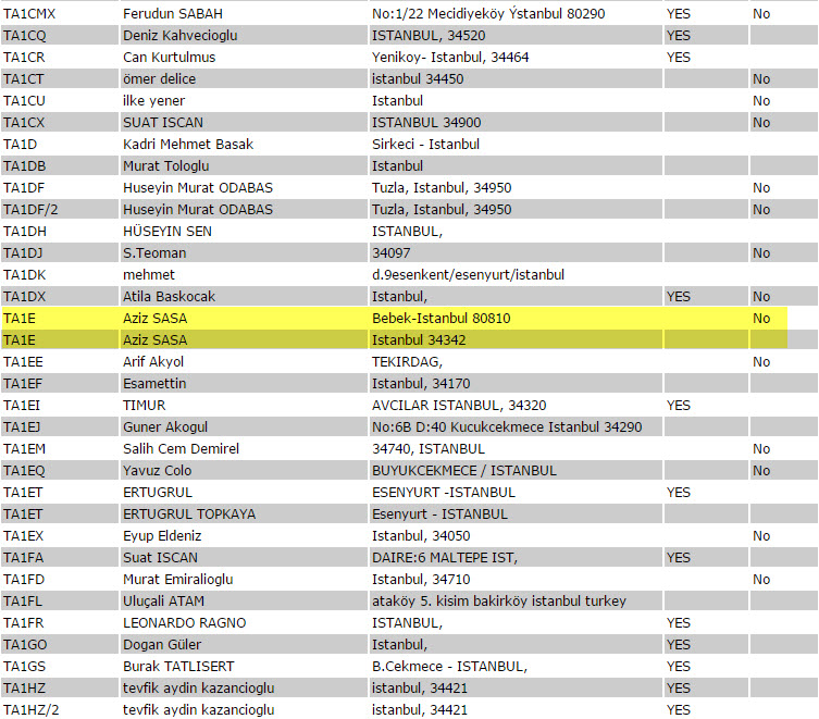 Kullanıcı listesi TA-TURKİYE