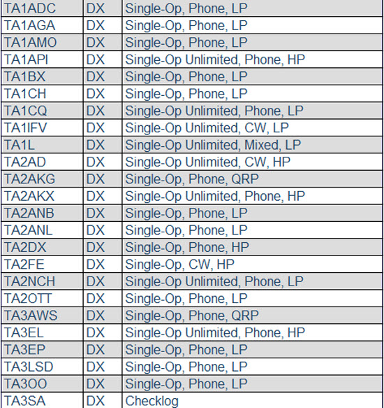 "Sadece Log alındı listesi yayınıdır, Liste içeriğinde çağrı işareti ile ilgili problemi olanlar olduğu bilgisi verilmektedir, Resmi olmayan çağrı işaretlerini dikkate almayınız"