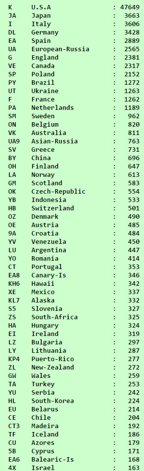 ... karşılaştırmaya referans olması için; Ülkeler ve lisanslı amatör sayıları ve nüfuslarına oranı (Kaynak Wikipedia)