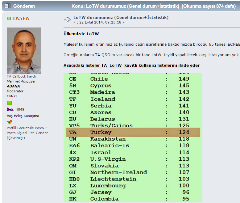 Ynt: LoTW durumumuz (Genel durum+İstatistik)