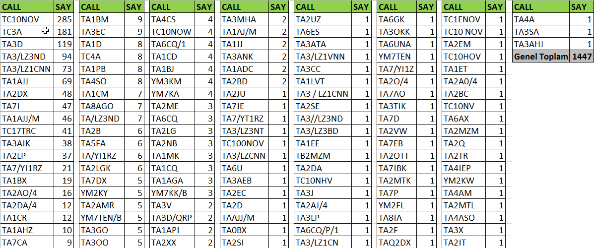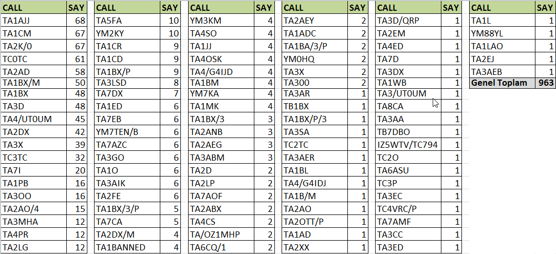 Özellikle DX ve Contest aylarında sayılar devasa yükseliş göstermiş .