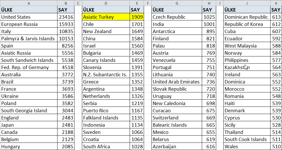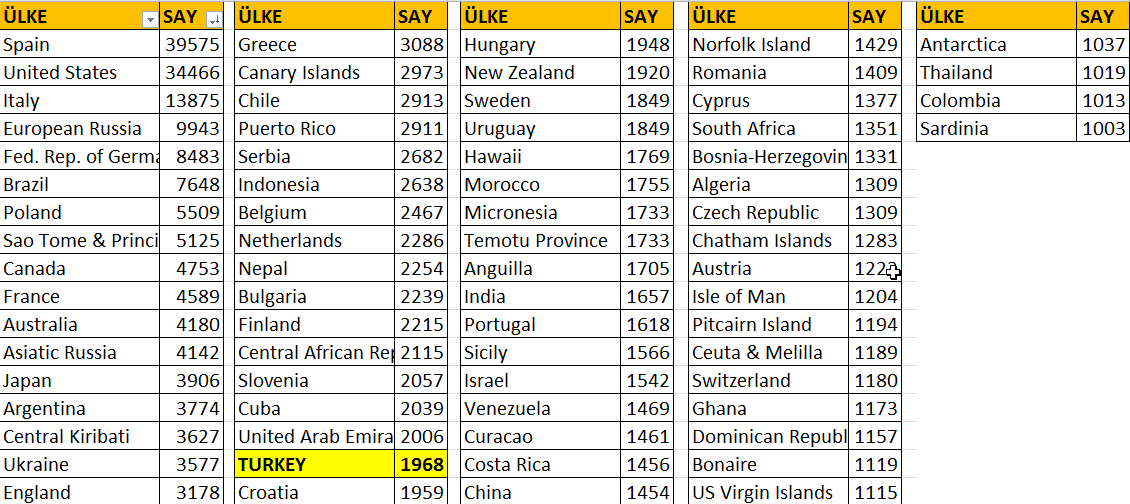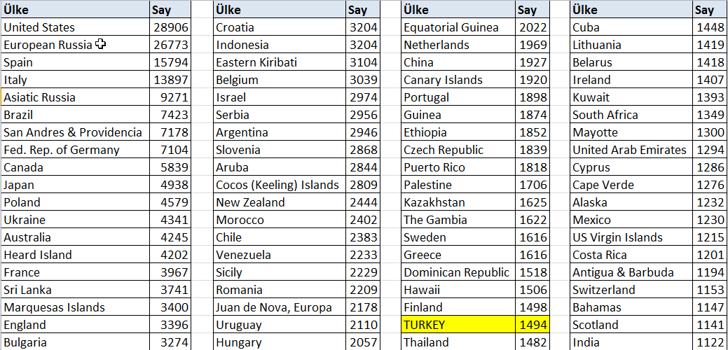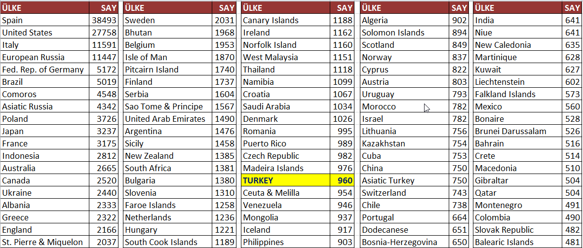 Şimdiye kadar aylara göre Ülke ve TA  sayılarla bakışı yansıttık. Biraz daha fazla detay'a girerek ;