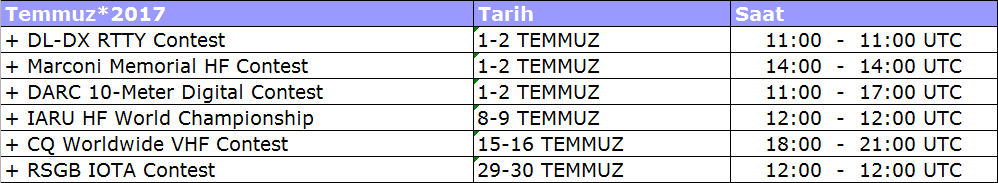 Mayıs-Haziran-Temmuz  Contest takivimi ilave edilmiştir.