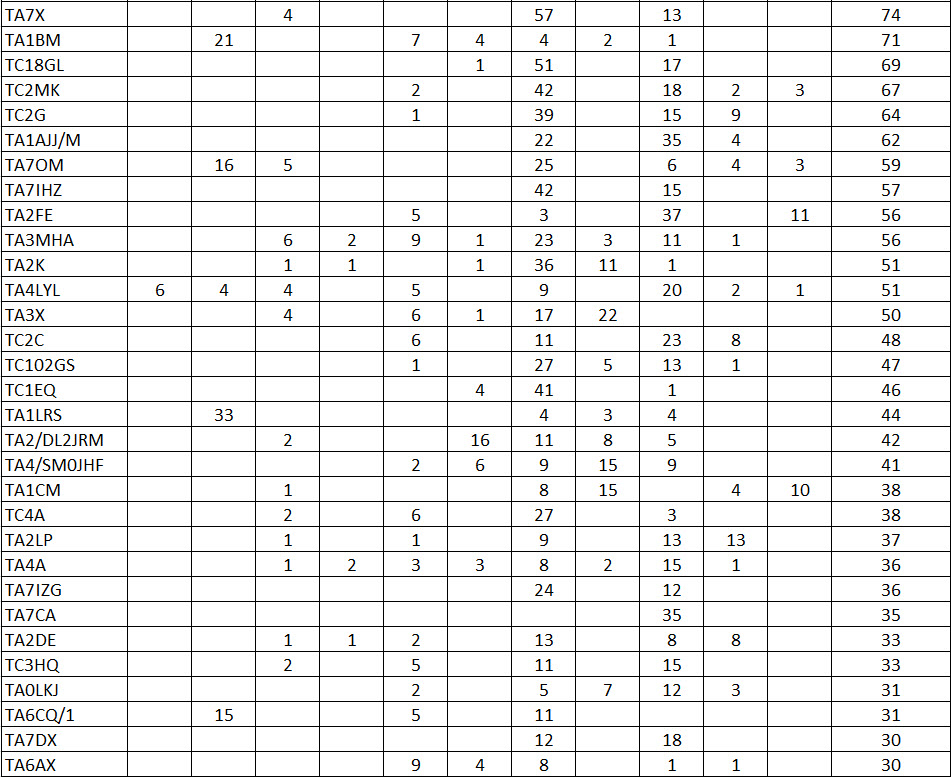 Genel toplamlar tutmayabilir bazı band sütunları bilerek sinmiştir, sebebi polemik konusu yapmak isteyenlerin önünü kesmektir.