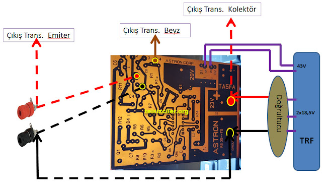 Yapacak olanlara mesaj; Burada bence en önemli olan şey, transistörlerin fazla ısınmaması ve trafo sekonder voltajı ne kadar yüksek olursa transistörlerimiz o kadar ısınacaktır.