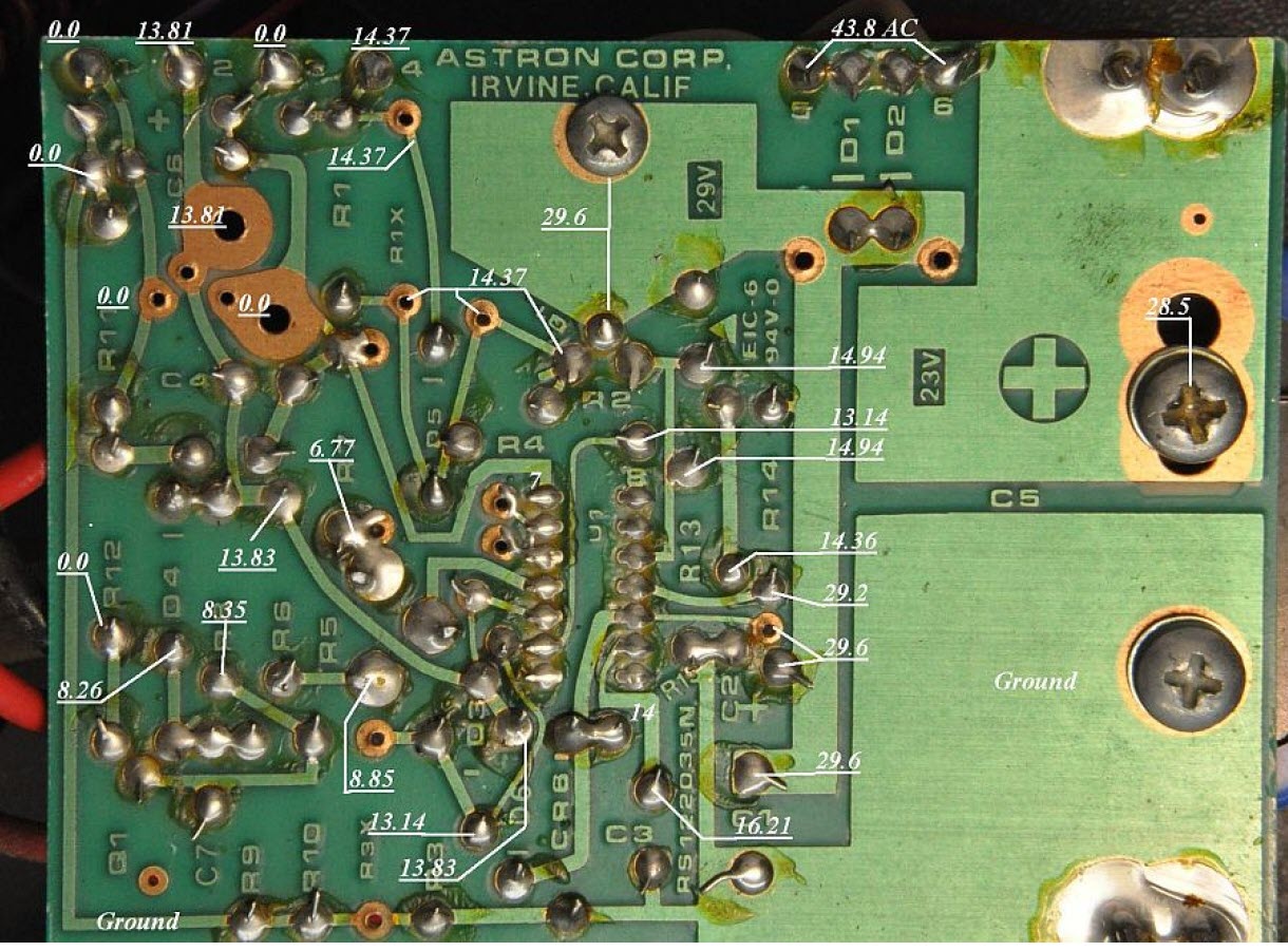 Yüksüz PCB voltaj noktaları.....(Bu test-voltajları fikir vermesi açısından kullandığınız Trafo çıkış voltajı ve direnç değerlerine göre ufak tefek değişiklikler gösterecektir)