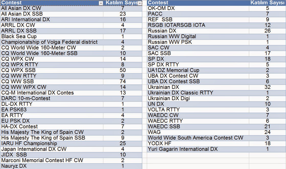 Mehmet bey elinize emeğinize sağlık. Hem emekleriniz hem de yarışmalara katılımlarınız için çok çok teşekkürler. Şahsım adına özeleştiri yapayım, katılım sayımın bu kadar düşük olmasının sebebi hala SSB dışında diğer modlarda çalış(a)mayışımdır. CW ve dijital modları becerebilseydim bu sayı 30-35 olabilirdi. Ayrıca DXCC ödüllerini de almış olurdum. Ne yazık ki mesleğimdeki yoğunluk yüzünden zihnimi şimdilik bu tarz çalışmalara veremiyorum. Artık emekli olunca diyelim...
